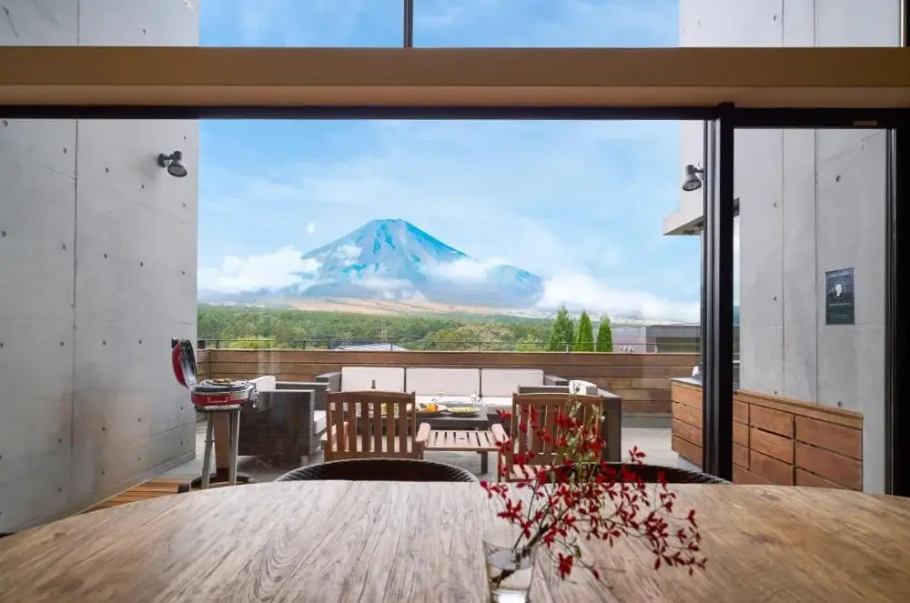 More information about Suite Villa YamanakakoFuji View Lodge offers free Wi-Fi and complimentary on-site parking for guests. Located in Oshino, Yamanashi Prefecture, this lodging provides easy access to scenic destinations. Just 11 minutes away by car lies Lake Yamanaka, renowned for its stunning views of Mount Fuji under clear skies.